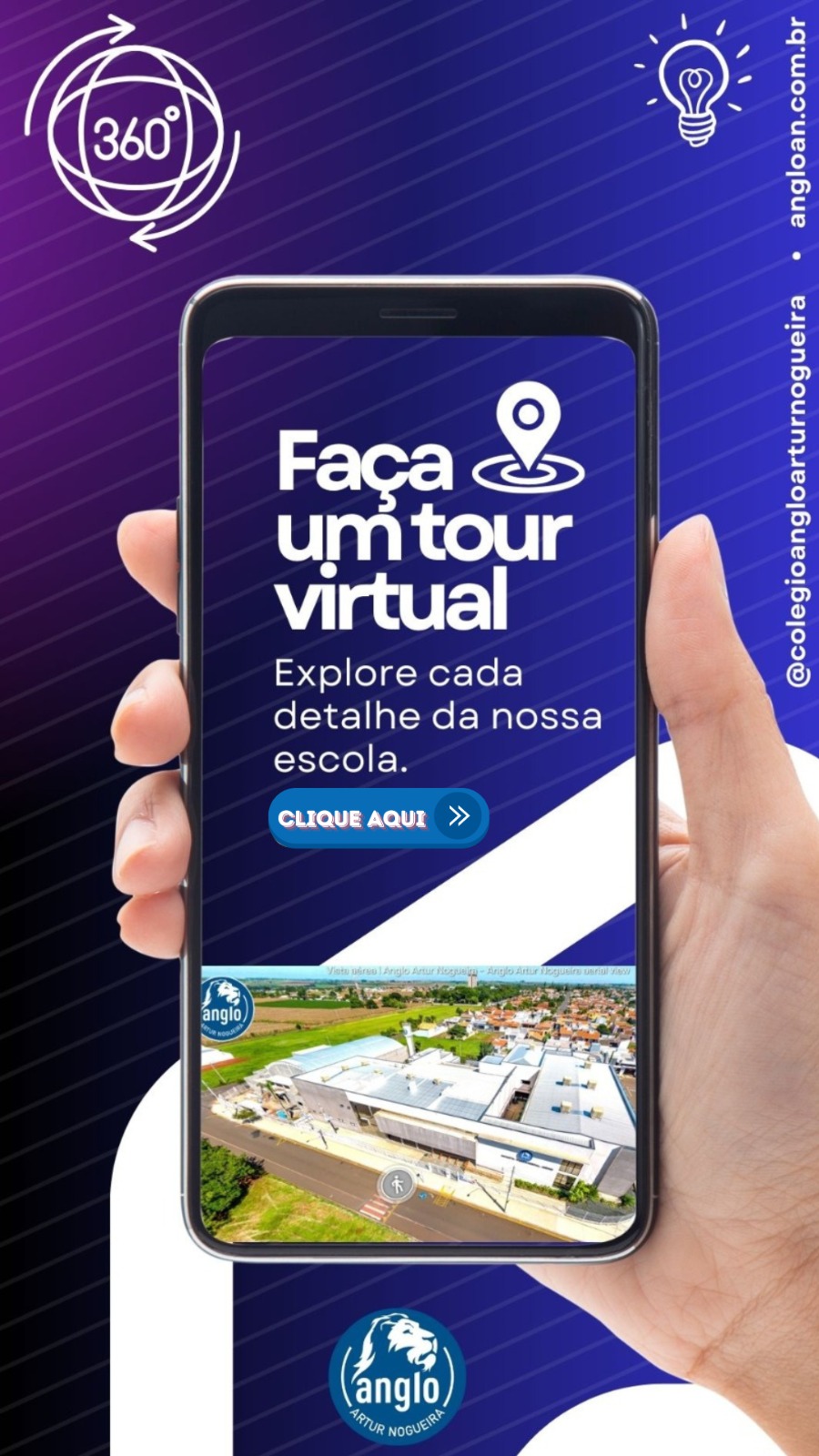O tour virtual já está disponível e as matrículas seguem abertas. Para mais informações, acessar o tour digital ou agendar uma visita presencial, basta entrar em contato com a equipe do Colégio Anglo Artur Nogueira.