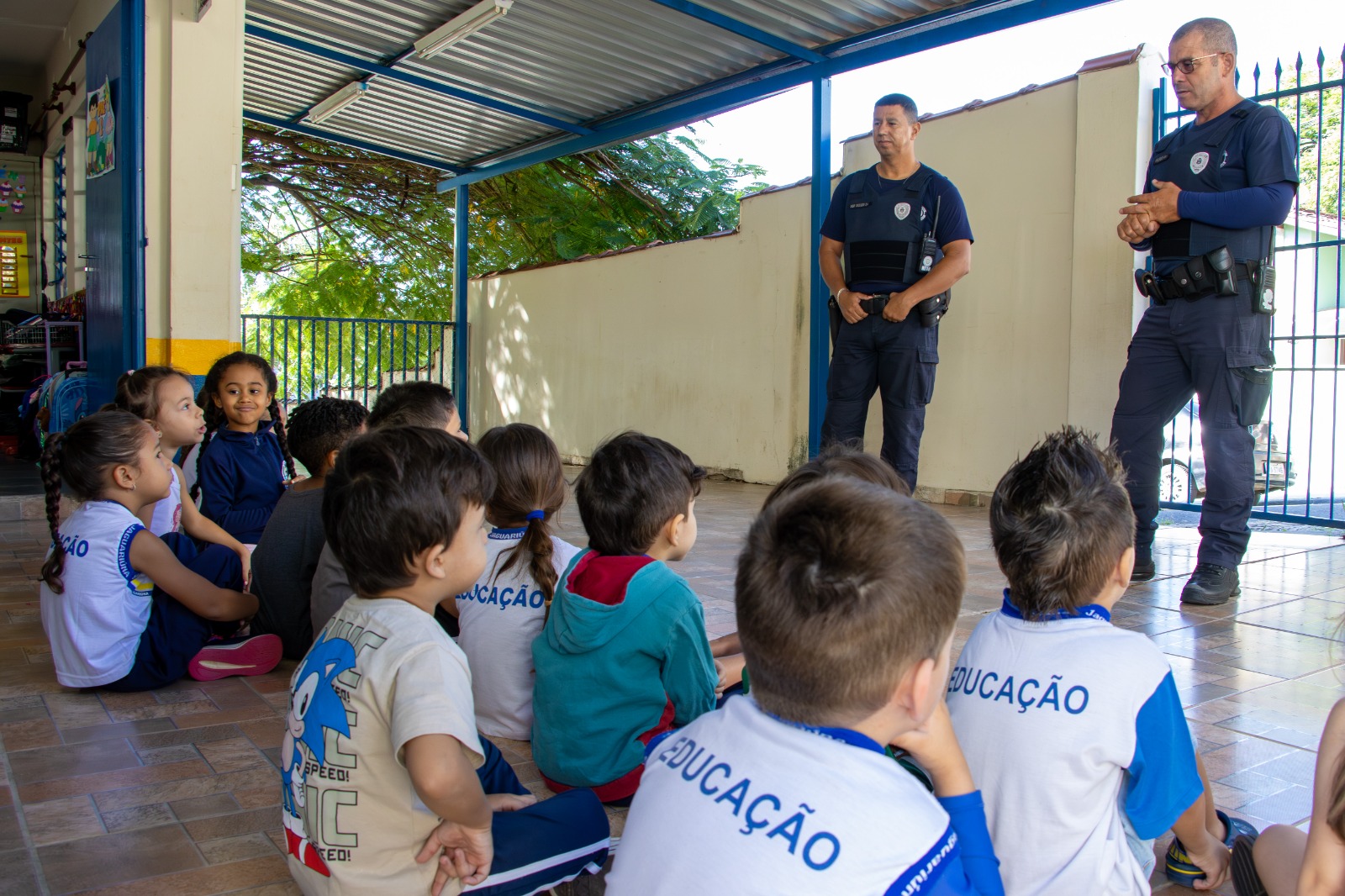 Alunos da EMEI Jardim Encantado, em Jaguariúna, participam nesta quarta-feira (4) de uma palestra educativa sobre segurança no trânsito. A iniciativa é promovida pela Secretaria Municipal de Educação, em parceria com a Secretaria de Segurança Pública e a Guarda Municipal.