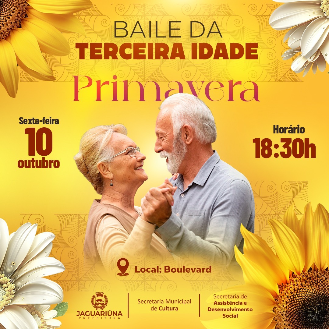 O tradicional Baile da Terceira Idade de Jaguariúna será realizado nesta sexta-feira, dia 10 de outubro, a partir das 18h30, no Boulevard do Centro Cultural. A participação é gratuita e aberta a todos os idosos do município.