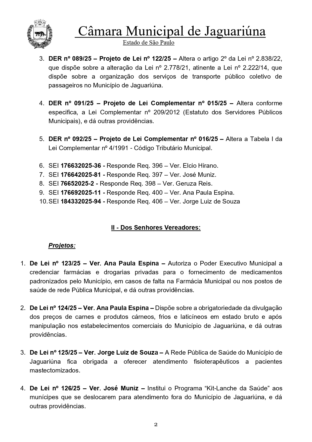 Vereadores também protocolaram propostas para serem votados nas áreas de saúde, direitos das mulheres, cultura afro-diásporica e o credenciamento de farmácias para suprir faltas de medicamentos, além da obrigatoriedade de divulgação de preços de carnes e derivados.