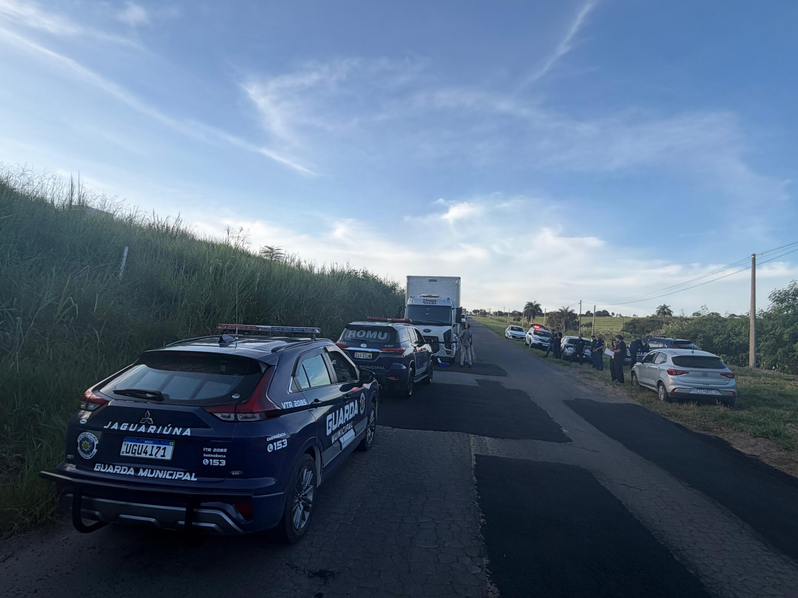 A Guarda Municipal foi acionada após receber denúncias de que um roubo de carga estaria em andamento no local.