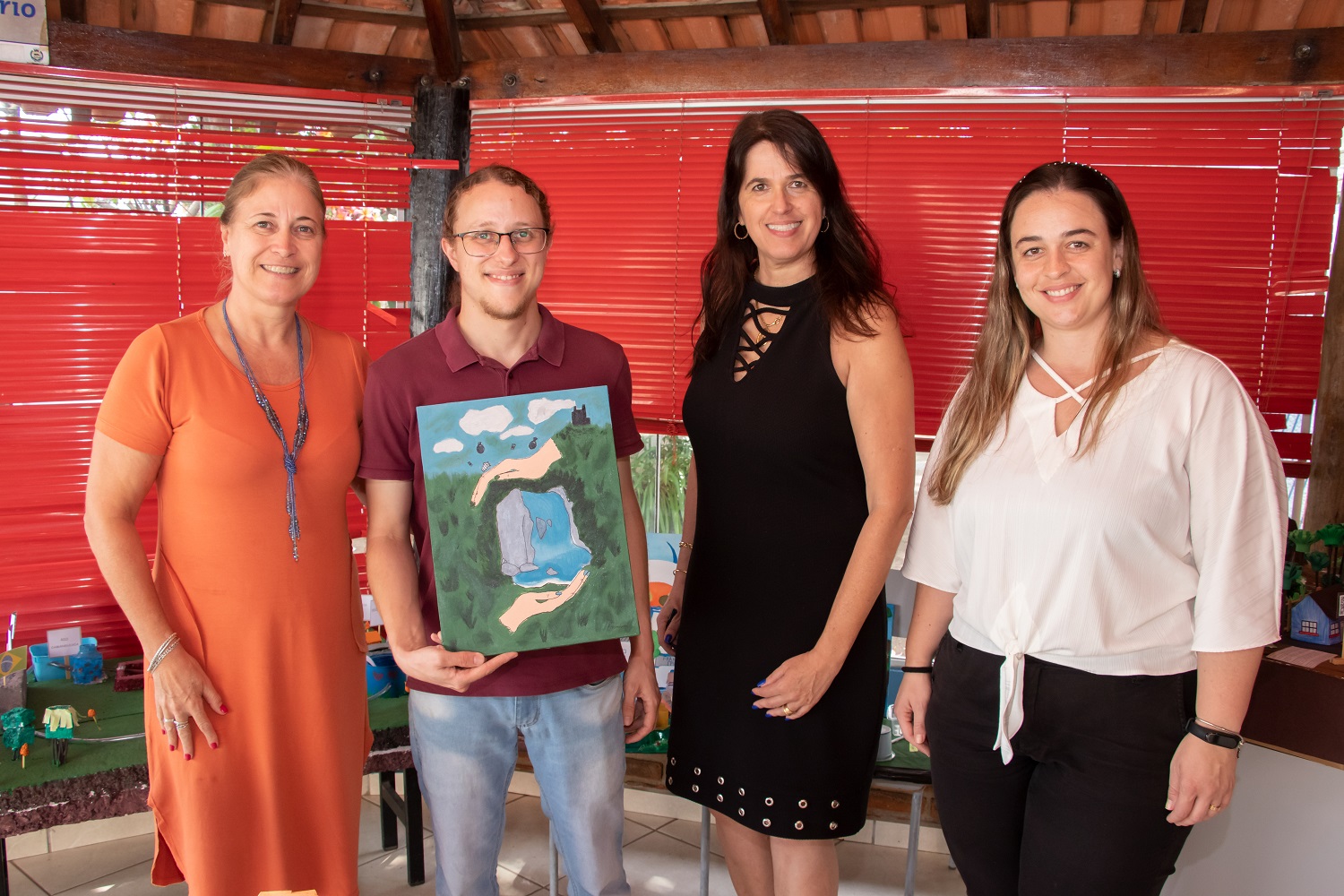 Já o tema da pintura em tela foi “ODS 6 – Água Potável e Saneamento: A Importância da Proteção de Nascentes”. Os alunos tiveram que destacar a importância da proteção de nascentes.