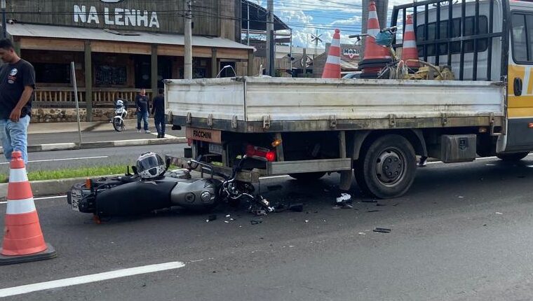 Segundo informações da Guarda Municipal, o caminhão realizava a sinalização de trânsito no momento em que a motocicleta tentou uma ultrapassagem e acabou colidindo na parte traseira do veículo.