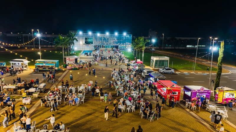 A praça de alimentação contará com food trucks, reforçando a proposta de lazer e gastronomia no meio da semana.