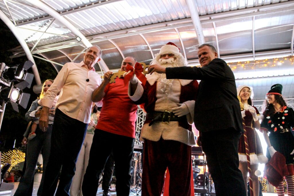 A primeira noite da Vila de Natal de Posse, na última quinta-feira (27), reuniu mais 3 mil pessoas na Praça da Matriz, para acompanhar a abertura oficial do evento, marcada pelo acendimento das luzes, e pela entrega simbólica das chaves da cidade ao Papai Noel.