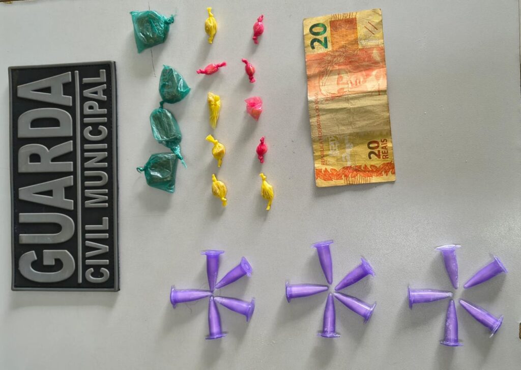 Ao todo, foram apreendidos 15 pinos de substância análoga à cocaína, quatro porções de substância análoga à maconha e 10 pedras de substância análoga ao crack, além de R$ 20. Ainda segundo os agentes, a suspeita afirmou que realizava a venda das drogas no local.