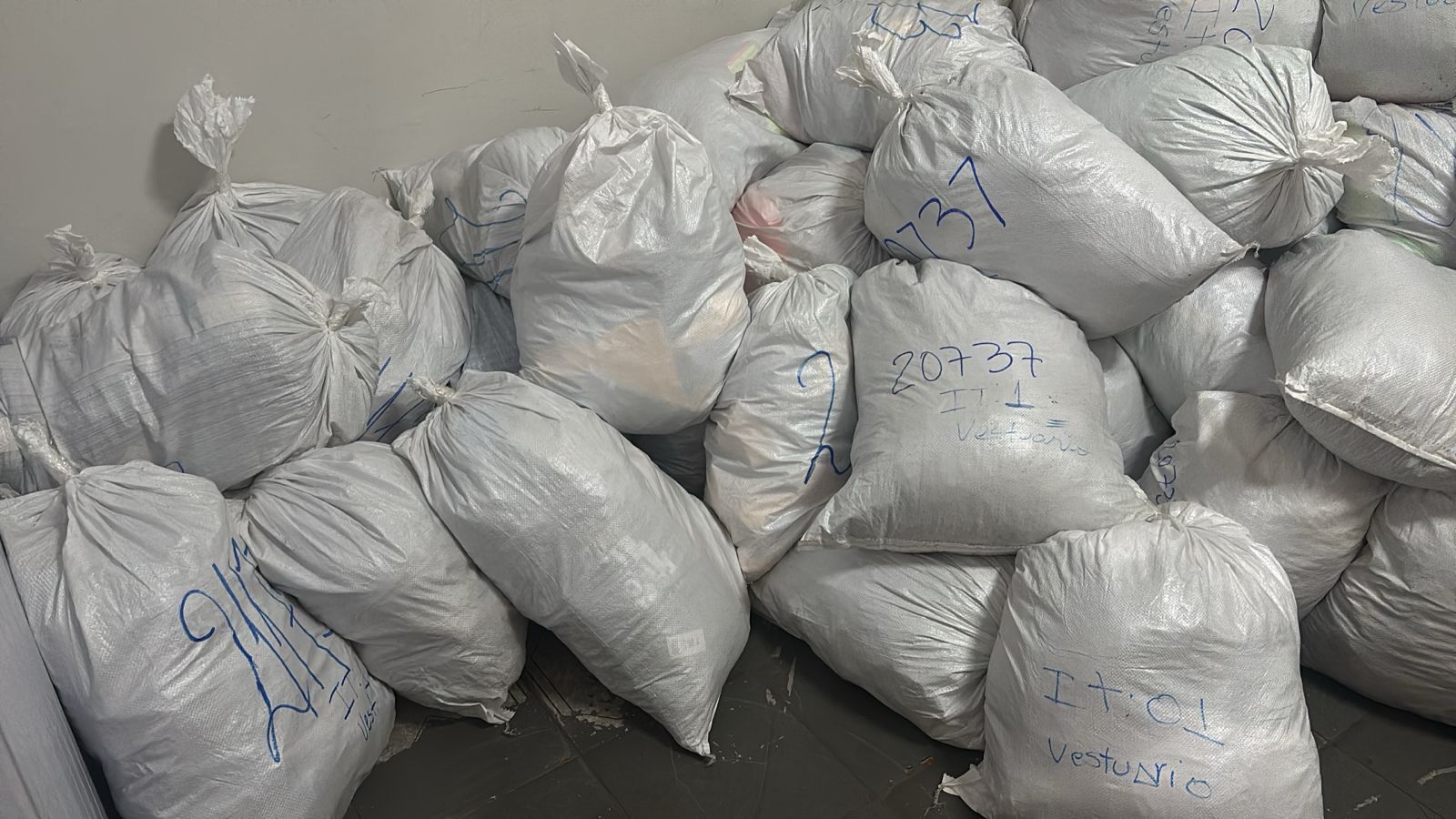 Entre as mercadorias recebidas estão 1 tonelada de roupas, atualmente em processo de descaracterização, e equipamentos eletrônicos, como 20 celulares e 8 caixas de som.