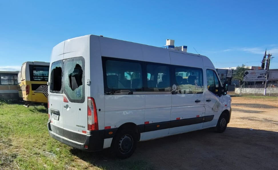 Uma van apresentava o vidro traseiro quebrado. Já um ônibus do transporte escolar teve danos na parte elétrica, após alteração na fiação, sendo necessária avaliação técnica para reparo.