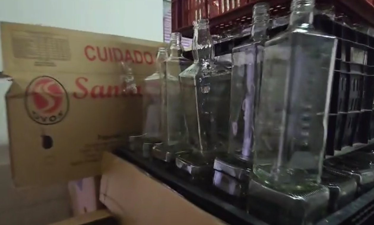 Operação da Delegacia Especializada e Vigilância Sanitária apreende centenas de garrafas e produtos químicos perigosos